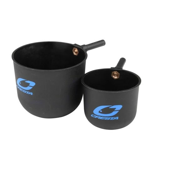 Deze Cupping Pots voldoen aan de wensen van de moderne vaste hengelvisser. Dankzij de 2 verschillende binnendiameters (4.5mm en 5.1mm) van de bevestigingsdelen, past deze set op praktisch iedere cupset. Met de opschroefbare pots (150 en 300ml) kan de gewenste hoeveelheid voer en aas uiterst precies op de stek gebracht worden.