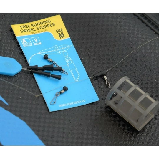 De Cresta Free Running Swivel Stoppers zijn de ideale oplossing voor het knopen van een schuivende feedermontage. Dankzij de juiste hardheid en de extreem hoge grip op de lijn, kan deze stopper over een knoop geschoven worden, zodat deze geheel afgedekt wordt. Dit reduceert de kans op verwarringen enorm. De ronde vormgeving van de stopper valt precies om een Cresta Free Running Swivel heen, waardoor op natuurlijke wijze altijd een afhouder ontstaat. Door de lijn te twisten ontstaat de perfecte montage! De Cresta Free Running Swivel Stoppers zijn verkrijgbaar in Medium en Large.