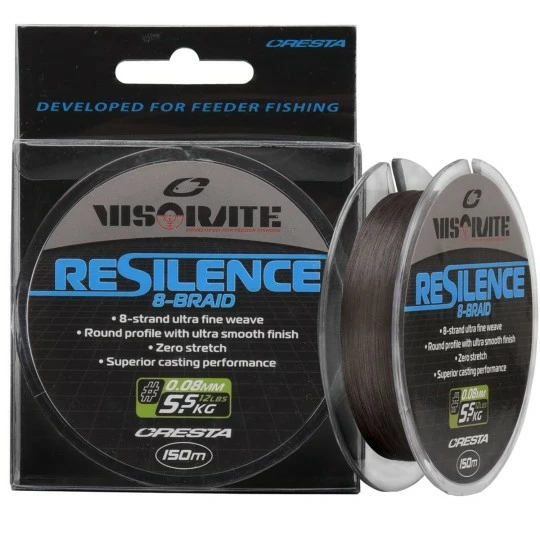 De eigenschappen van Visorate Resilence Braid zijn speciaal afgestemd op het feedervissen. Deze uit 8 strengen bestaande gevlochten lijn, is praktisch rond en bezit dankzij een zeer fijne weefstructuur een extreem glad oppervlak. Dit zorgt voor de optimale werpeigenschappen. Resilence braid laat zich gemakkelijk knopen en bezit geen enkele rek, waardoor een optimale beetregistratie ontstaat. De slijtvastheid en juiste mate van soepelheid zorgen ervoor dat deze lijn zeer geschikt voor alle voorkomende watertypen en visafstanden.