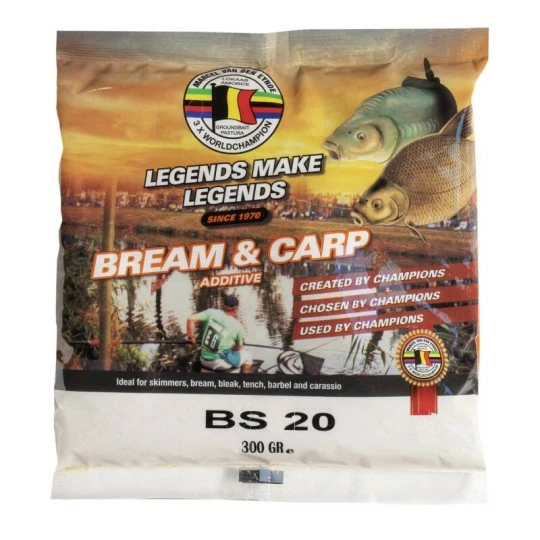BS20 is een eetlustopwekker die voor ons bijna geen smaak afgeeft. Het product is echt ontwikkeld op niveau van viswaarnemingen. BS20 werkt heel goed samen met enkele van onze additieven op een 1 -1 verhouding: Brasem T, Vanille, Strawberry, Banaan (1 deel BS20 = 1 deel van de opgesomde additieven) en bij Brasem caramel en Big Fish kan je beter 1 op 2 werken.